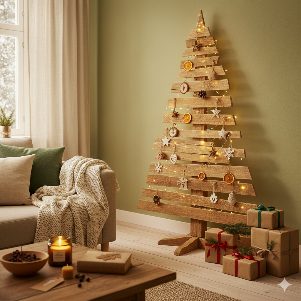 • Pallet or Recycled Wood: Build a wooden tree using pallets or old boards—a rustic and customizable option.