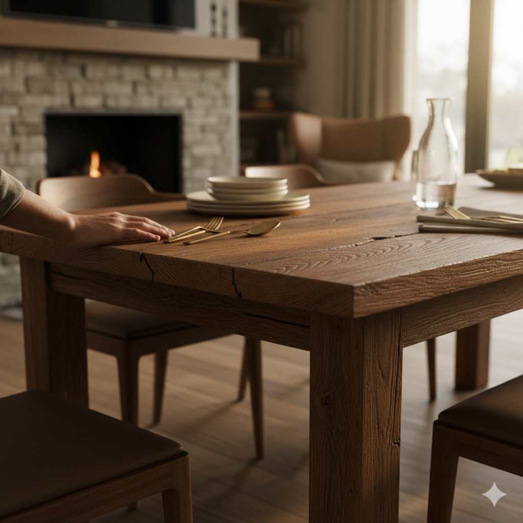 Repairability (The Longevity Factor) This is the biggest advantage. A scratch or heat mark can be sanded down and completely restored. A well-maintained solid wood table is an investment that lasts for generations.