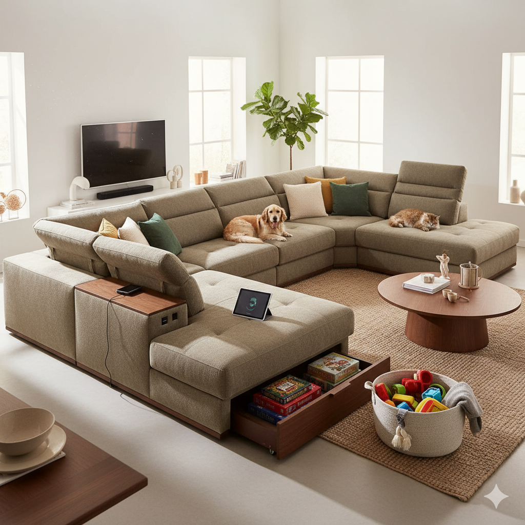 Modern family sofas incorporate small intelligent design details that enhance the daily user experience, making life more comfortable and organized.